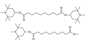 A mixture of bis(1,2,2,6,6-pentamethyl-4-piperidinyl) caprylate and 1,2,2,6,6-pentamethyl-4-piperidinyl) caprylate methyl ester.